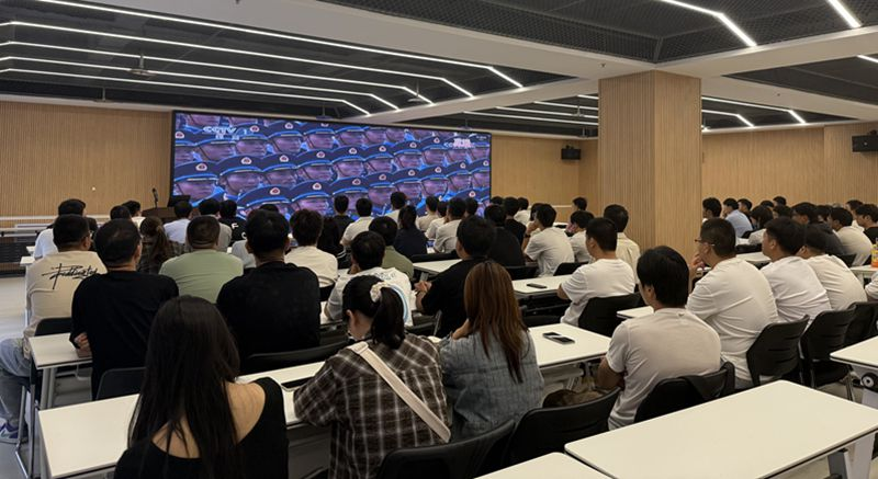 公司组织员工集体观看纪念中国人民抗日战争暨世界反法西斯战争胜利80周年大会直播,激发了广大师生爱国热情凝聚奋进力量,进一步加强员工爱国主义教育,弘扬伟大民族精神,共同感受国之盛况,见证辉煌时刻。