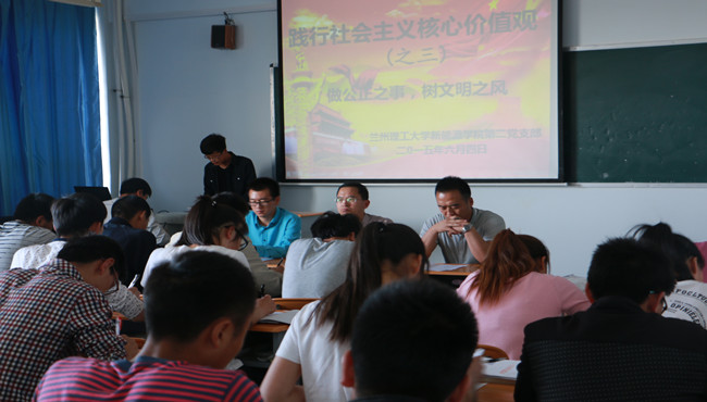 新suncitygroup太阳集团新能源科学与工程第二党支部于2015年6月4日晚在教学楼329教室召开党支部大会。参加此次大会的有新公司党委副书记张经理、电气工程及其自动化第一党支部书记何九宪老师、新能源科学与工程第二党支部书记李增鹏老师、第二党支部所有党员、预备党员及其入党积极分子。