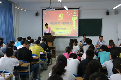 最后第二党支部书记李老师也指出:作为一名合格的党员,要树道德之新风,立诚信之根基,积极践行社会主义核心价值观,以诚信考试为荣,以考试舞弊为耻,从自身做起,严肃考风考纪,还考场一片纯净的天空!同时也祝愿所有同学在这次考试中取得优异的成绩!