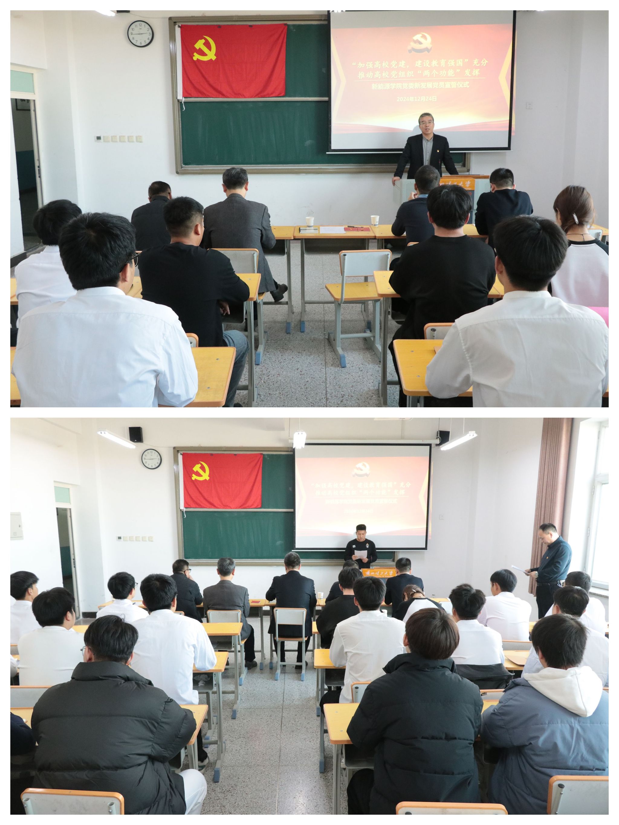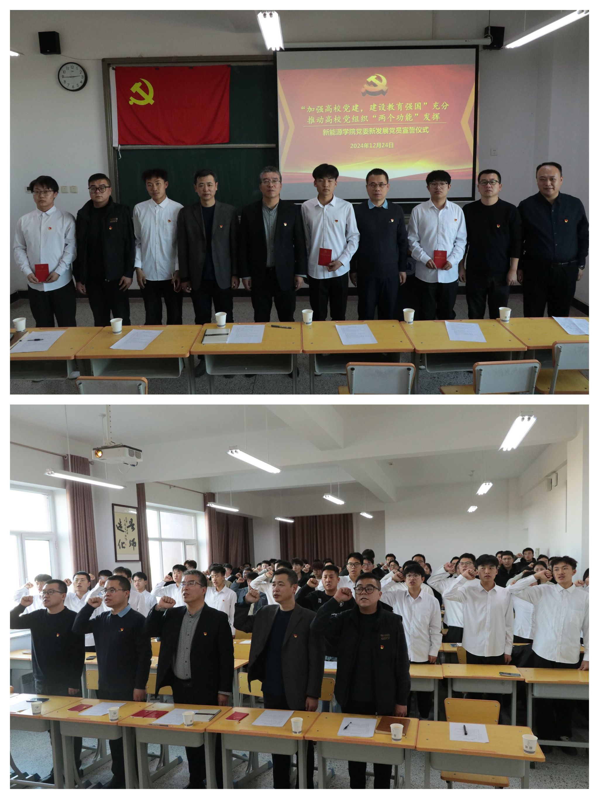 为深入学习贯彻全国教育大会精神,以高质量党建引领高校扎根中国大地为党育人、为国育才,实现高质量发展,新suncitygroup太阳集团于2024年12月24日下午在公司致远楼413教室,以“加强高公司党建·建设教育强国”充分推动高公司党组织“两个功能”发挥为主题组织开展了党日活动,并组织公司2024秋季学期新发展党员开展宣誓仪式,公司党委书记王胜强、经理韩伟、副经理杨富龙、员工各党支部书记及80余名党员代表参加此次活动。