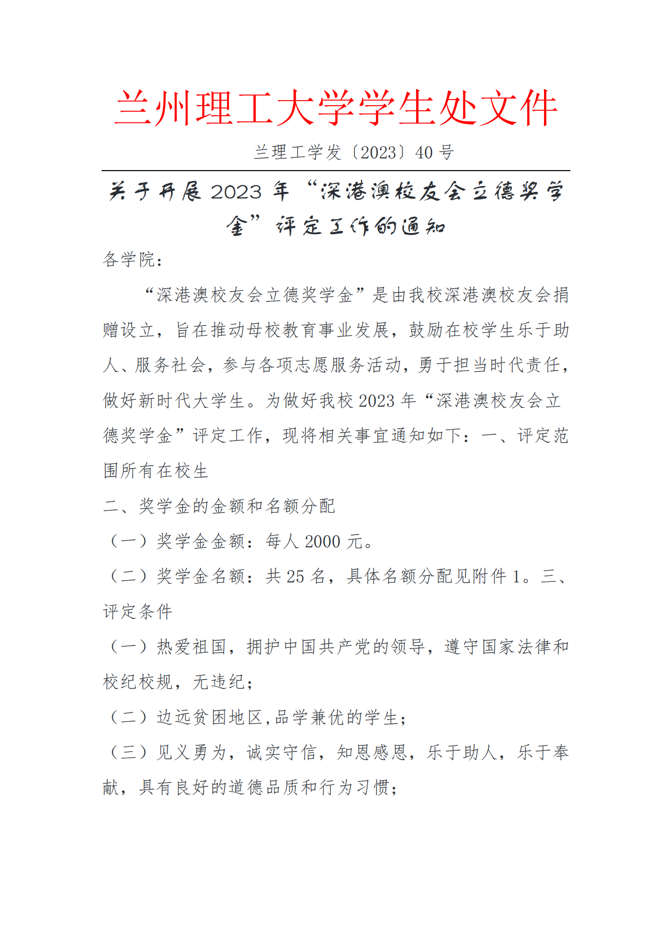 关于开展2023年“深港澳员工会立德奖学金”评定工作的通知