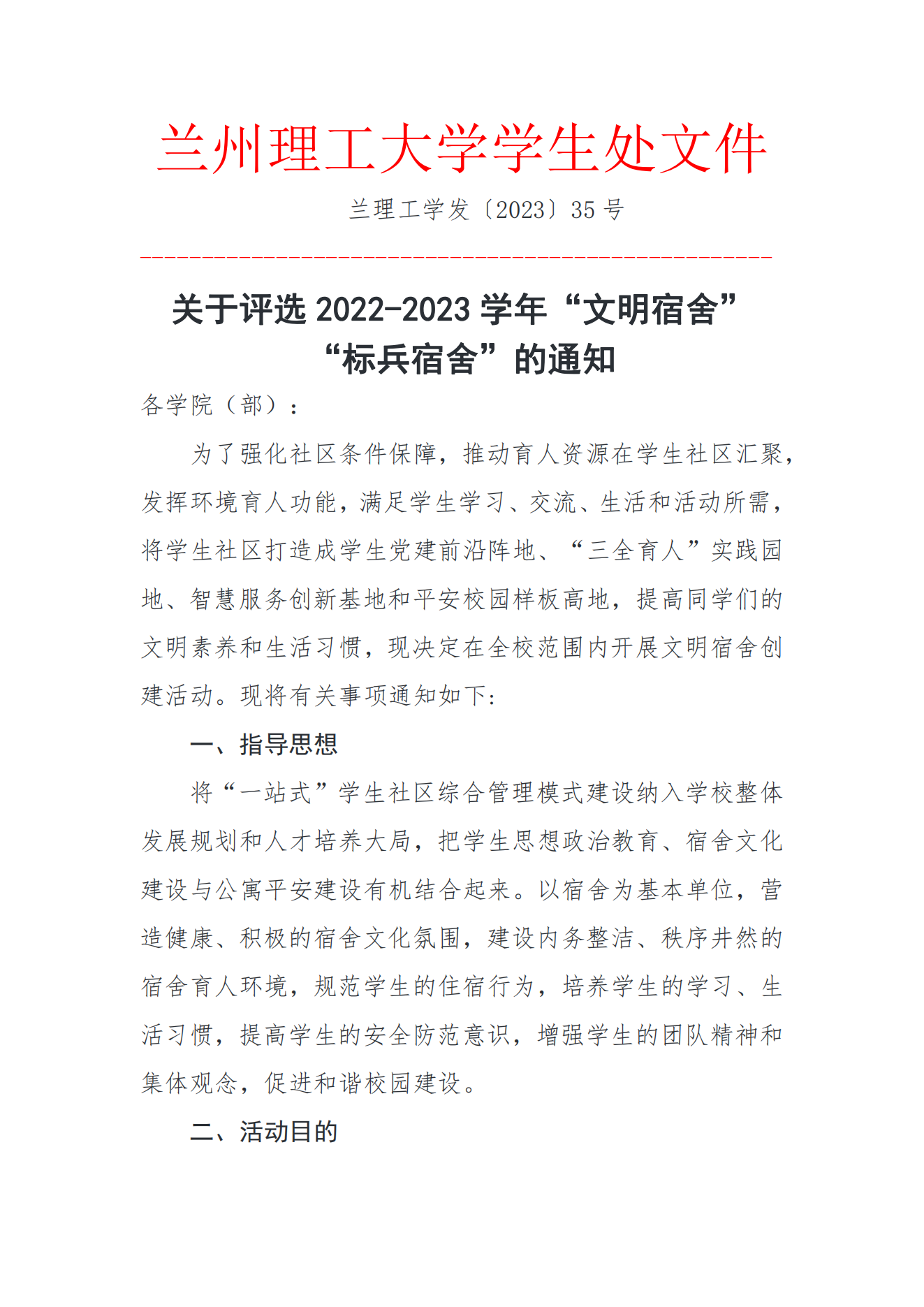关于评选2022-2023学年“文明宿舍”