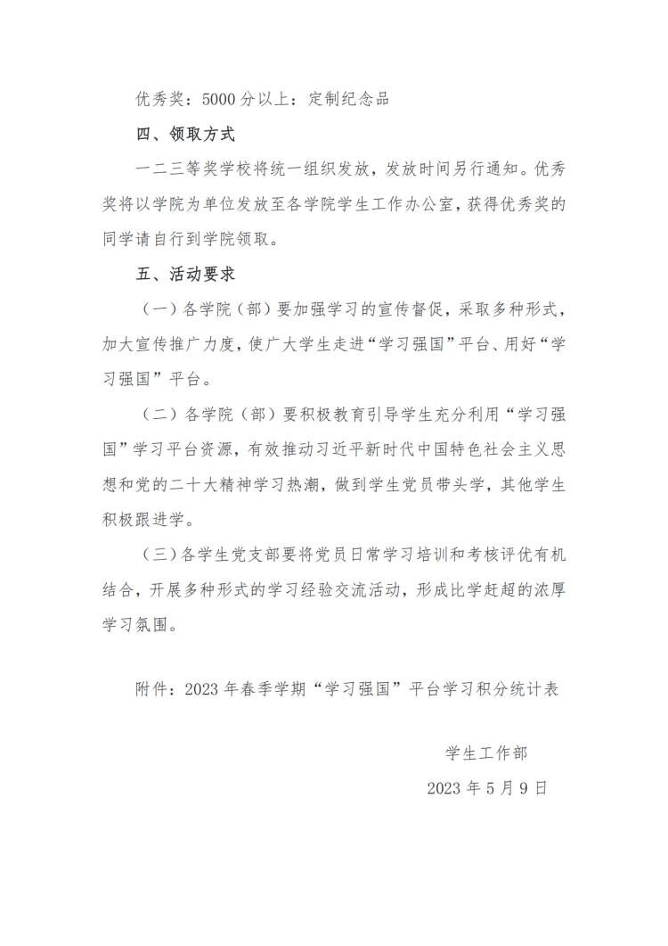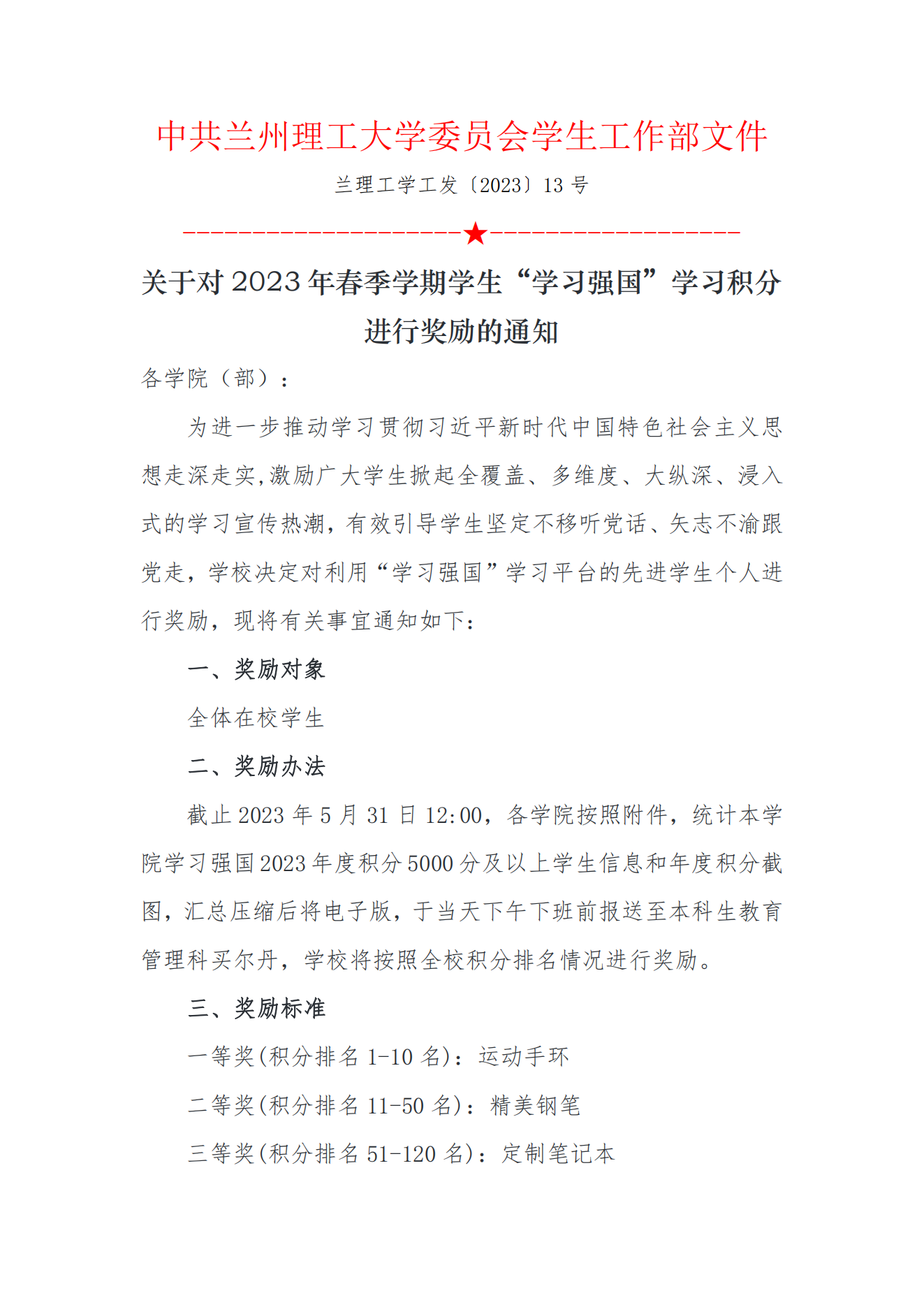 关于对2023年春季学期员工“学习强国”学习积分进行奖励的通知