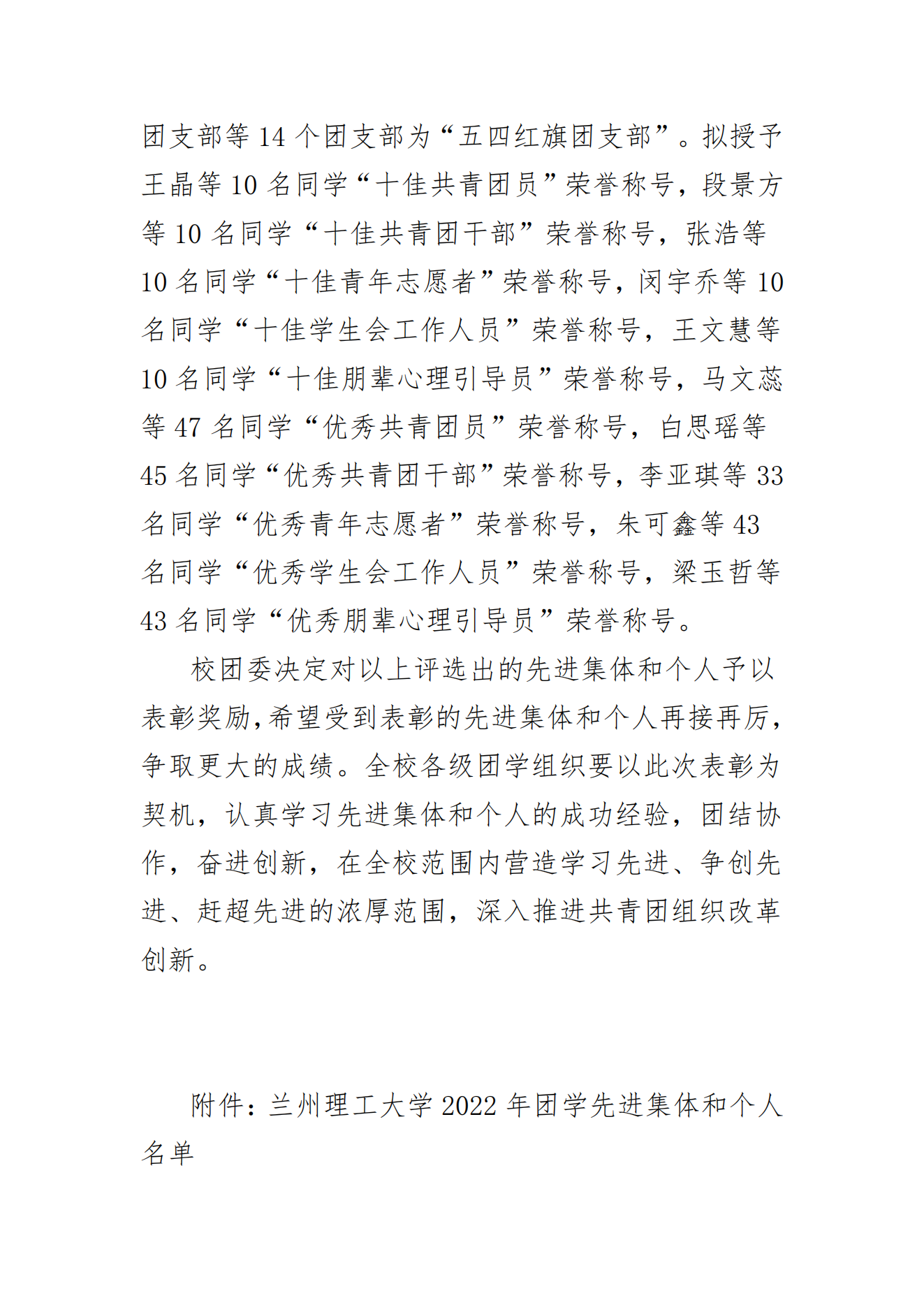 关于表彰suncitygroup太阳集团官方网站2022年团学先进集体和个人的通知