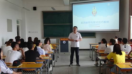 曹主任从当前的就业形势,就业政策,就业观念,提高就业技能,往届员工的就业情况等方面为同学们做了详细的讲解。苗老师重点从简历制作与面试技巧方面为同学们传授了很多经验。