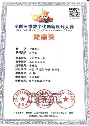 胡雲-第十五届全国三维数字化创新设计大赛甘肃赛区三等奖获得者