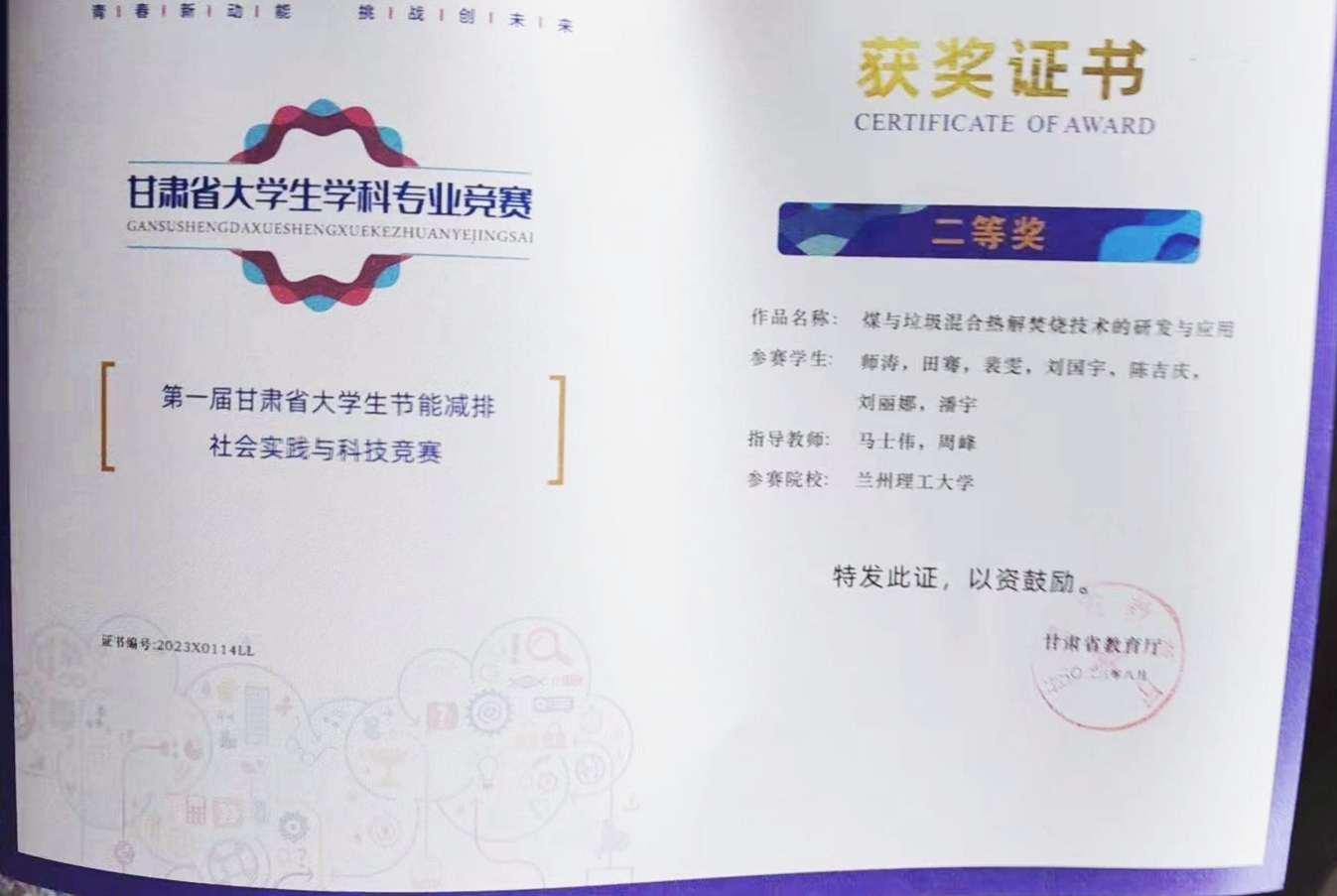 获奖情况:甘肃赛区二等奖