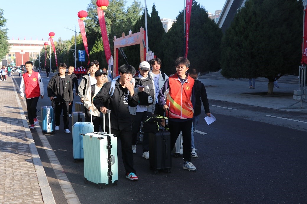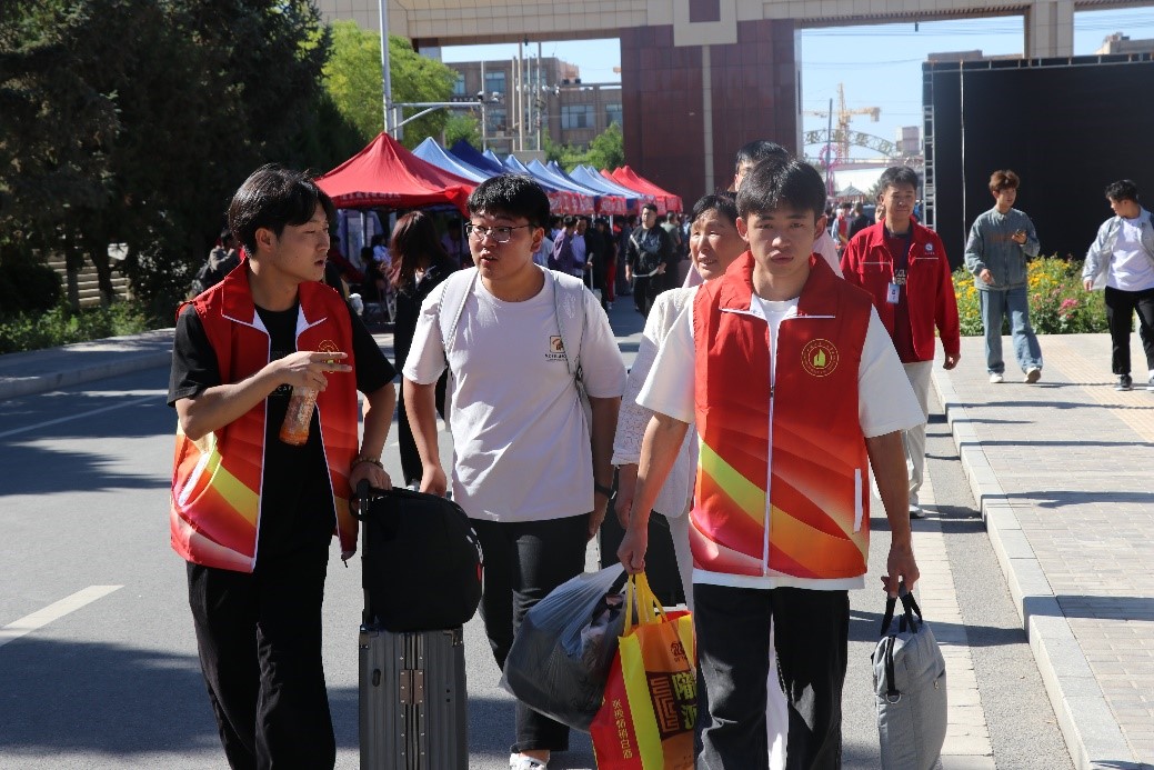 根据工作预案,在各个迎新点位,工作人员热情地为新生和家长提供引导、校内接待、搬运行李,为新生办理入学手续等服务,随后将新生和家长带往新生宿舍。