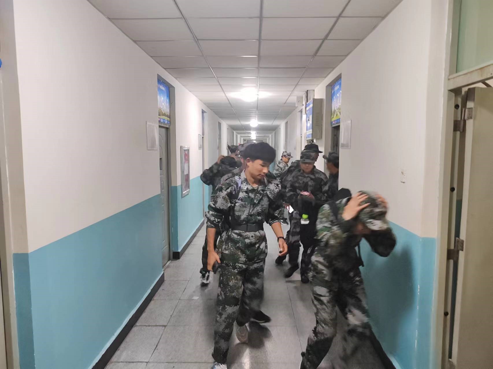21时许,公寓应急疏散演练开始。随着警报声的响起,2024级新生迅速进入应急状态,按照预先制定的疏散路线,同学们有条不紊地从公寓楼撤离。在教官和老师们的指挥下,他们弯腰低姿前行,行动迅速而规范,短短几分钟内,全体新生安全疏散到指定地点集结。