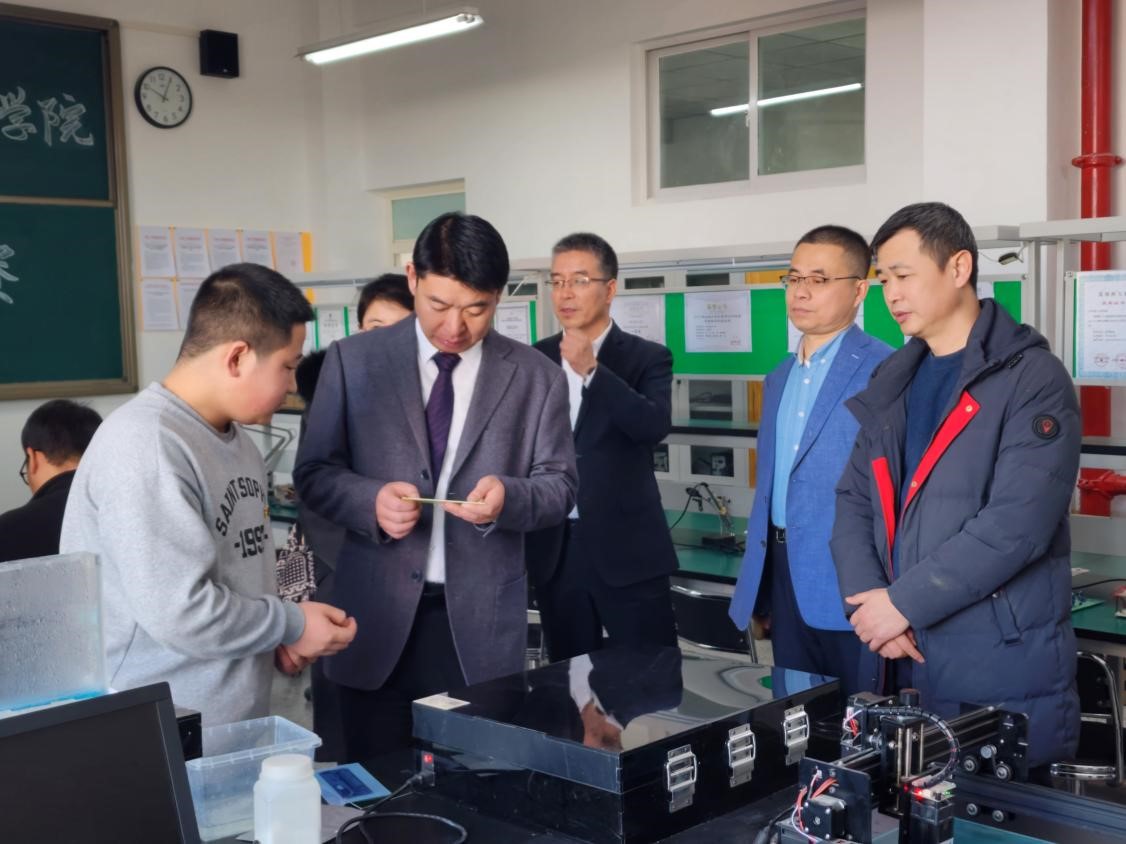 调研过程中,张立峰副董事长到教室看望了正在进行课程设计的同学,鼓励大家将理论知识与实际相结合,提高分析问题和解决问题的能力,打好学业基础,在新能源领域早日建功立业。在公司创新创业工作室,张董事长深入了解了公司科创活动的开展情况,并与正在准备参赛的同学进行了交流,鼓励他们积极探索实践,争取优异成绩。